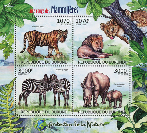 Burundi Cats Domestic Animals Souvenir Sheet of 4 Stamps The domestic cat (Felis silvestris catus...