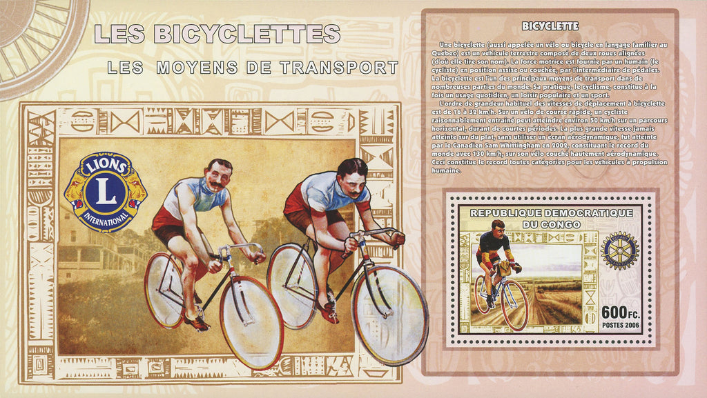 Congo Bikes Bicycles Transportation Souvenir Sheet Mint NH