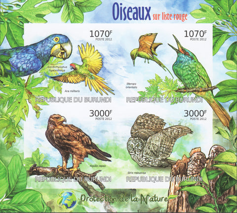 Burundi Birds in Danger Nature Imperforated Souvenir Sheet Mint NH Birds, also known as Aves,...