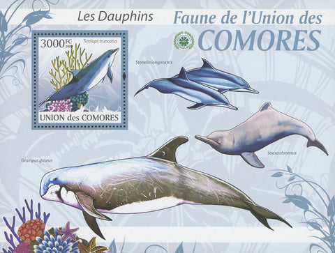 Comoros Dolphins Souvenir Sheet Mint NH Dolphins are a widely distributed and diverse group of...