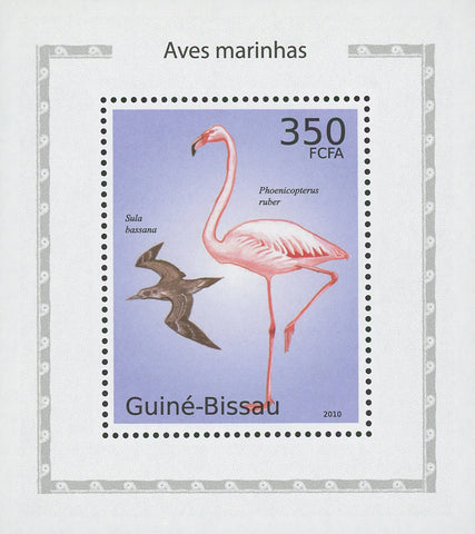 Guiné-Bissau Sea Birds Phonicoreptus Ruber Mini Sov. Sheet MNH Seabirds (also known as marine birds)...