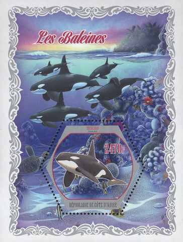 Cote D'Ivoire Whales Marine Fauna Beach Ocean Souvenir Sheet Mint NH Whales are a widely...