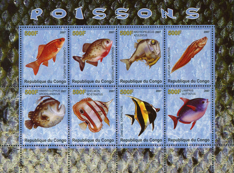 Fish Corals Marine Life Souvenir Sheet of 6 Stamps Mint NH Fish are gill-bearing aquatic...